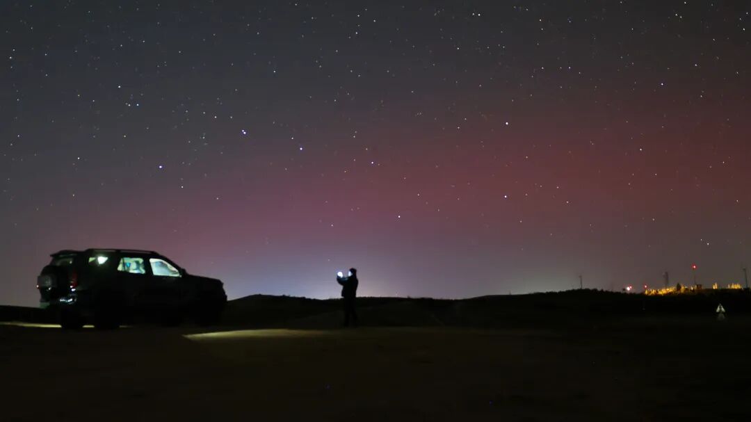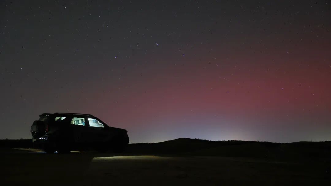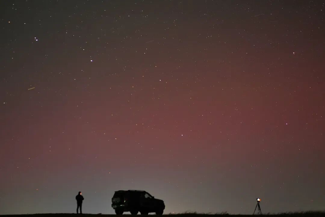 晚,极光再现于北京北部,肉眼可见淡粉与一抹淡淡的绿色。